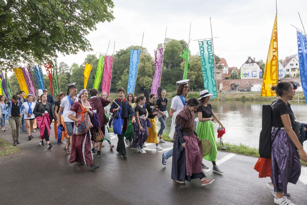 Abschlussperformance des Donaujugendcamps mit Geschichten von einem begrenzten und unbegrenzten Fluss
